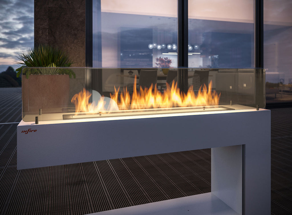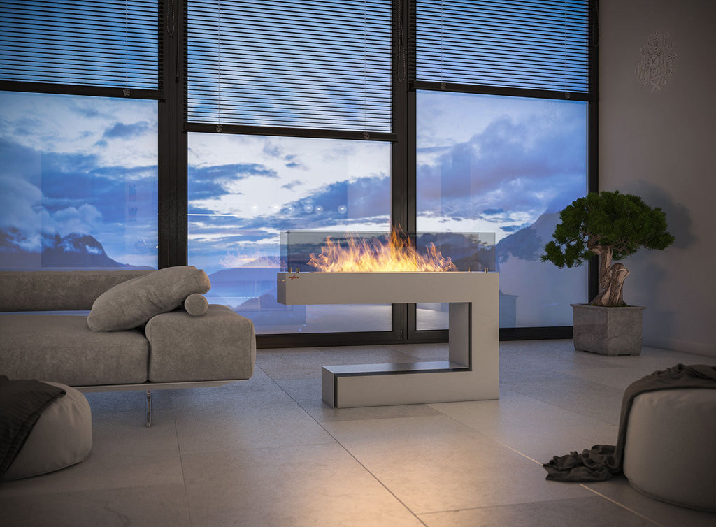Questo tipo di biocamino viene spesso scelto nel caso di camere spaziose, in cui sono collegati diversi spazi, ad esempio un soggiorno con sala da pranzo. Il suo montaggio non richiede un installazione complicata o connessione al camino. È facile da installare e intuitivo da usare.