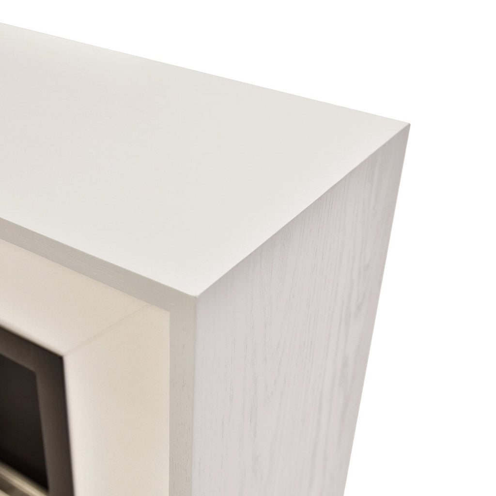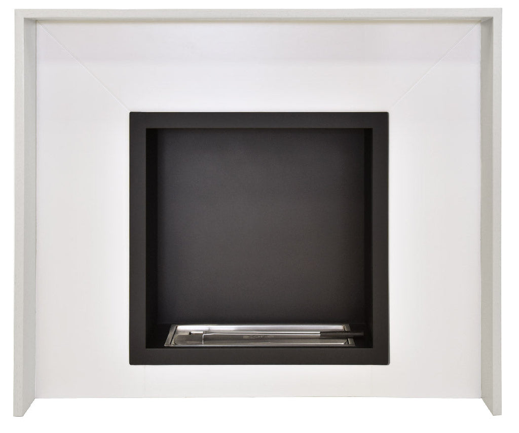Il biocamino Roxana si fregia di una forma squadrata e di interessanti giochi cromatici: la cornice MDF color tortora con lievi venature lignee, il pannello frontale in metallo bianco e il vano nero dellinserto. Perfetto per zone living in stile contemporaneo.