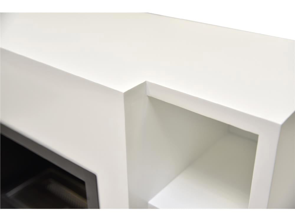 Trudi è realizzato in MDF bianco opaco e metallo. Con 3,5 litri di bioetanolo, il massimo della capienza del suo bruciatore, rimane acceso dalle 4 alle 6 ore a serbatoio aperto, con una buona quantità di calore rilasciato in una stanza di circa 40 mq.