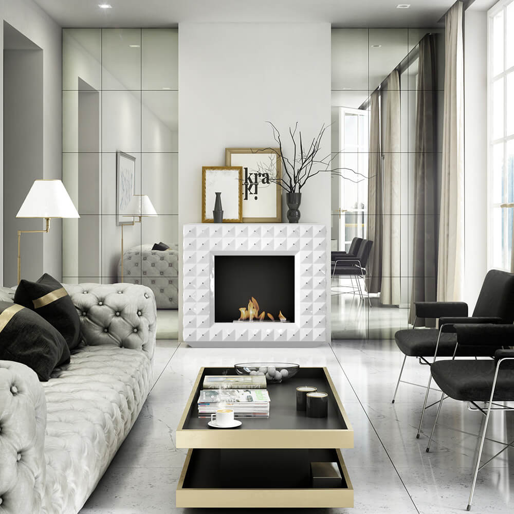 Camino a Bioetanolo da Pavimento 113x97,3 cm Flig Boise Swarovski Bianco Lucido