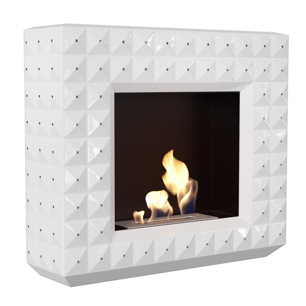 Caminetto a bioetanolo da pavimento dal design moderno imprieziosito con pietre Swarovski che emula un vero camino tradizionale. Facile da installare, questo biocamino è possibile appoggiarlo su qualsiasi parete piana e donerà al vostro soggiorno un tocco di eleganza. Aggiungendo al bioetanolo qualche goccia di essenza profumata, il biocamino può essere utilizzato anche come diffusore di aromi.
