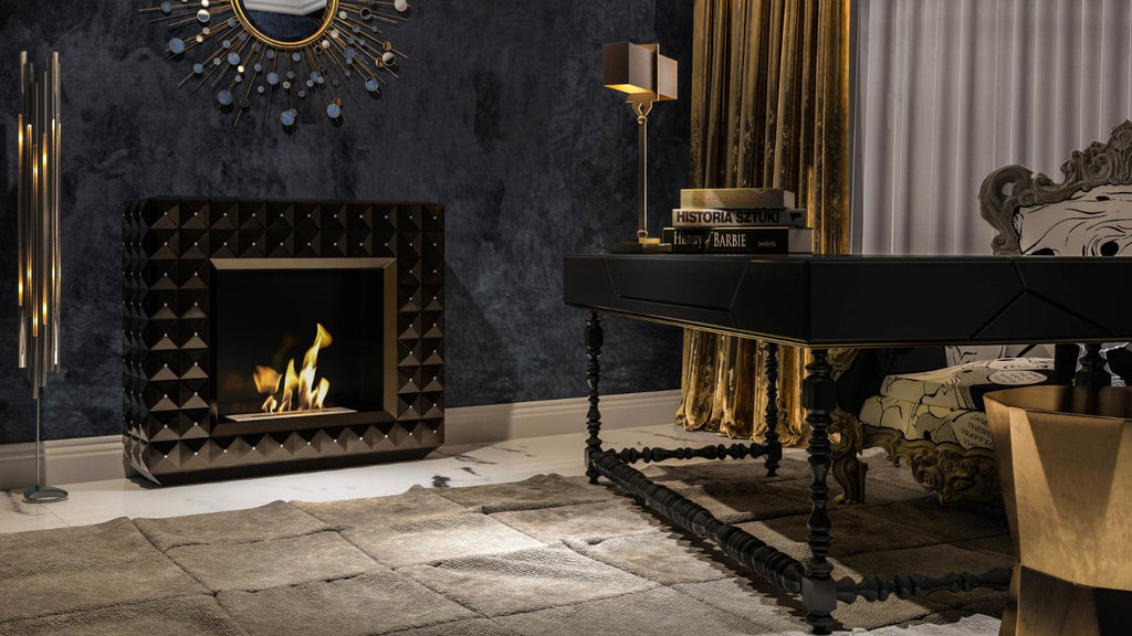 Caminetto a bioetanolo da pavimento dal design moderno imprieziosito con pietre Swarovski che emula un vero camino tradizionale. Facile da installare, questo biocamino è possibile appoggiarlo su qualsiasi parete piana e donerà al vostro soggiorno un tocco di eleganza. Aggiungendo al bioetanolo qualche goccia di essenza profumata, il biocamino può essere utilizzato anche come diffusore di aromi.