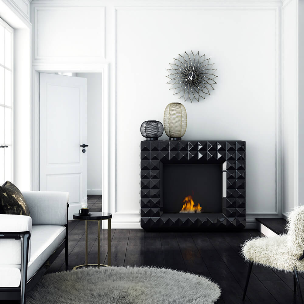 Camino a Bioetanolo da Pavimento 113x97,3 cm Flig Boise Swarovski Nero Lucido