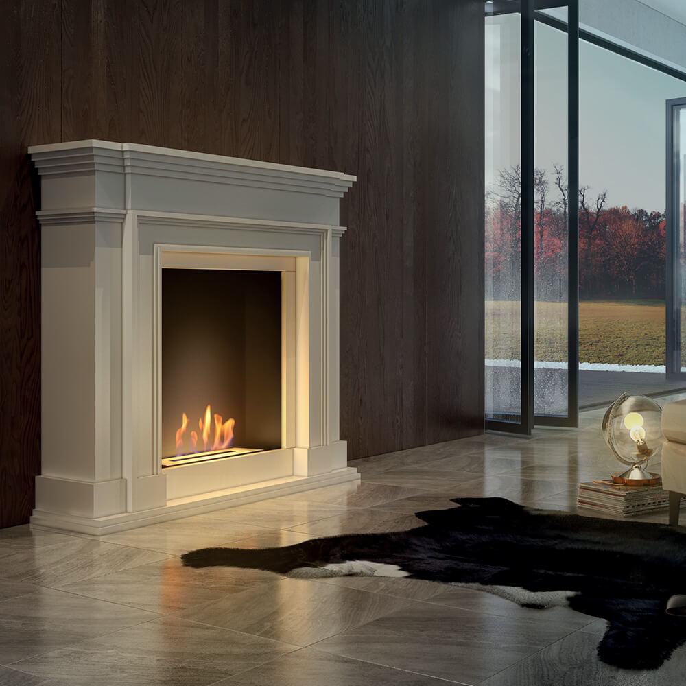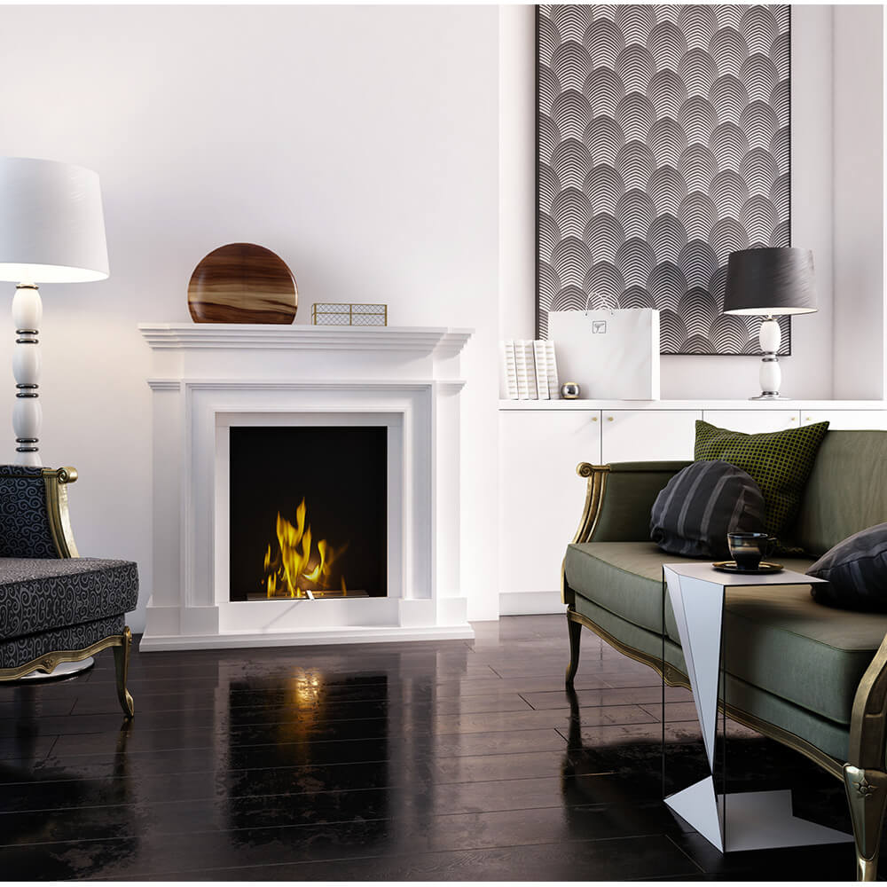 Caminetto a bioetanolo da pavimento dal design classico che emula un vero camino tradizionale. Facile da installare, questo biocamino è possibile appoggiarlo su qualsiasi parete piana. Aggiungendo al bioetanolo qualche goccia di essenza profumata, il biocamino può essere utilizzato anche come diffusore di aromi.