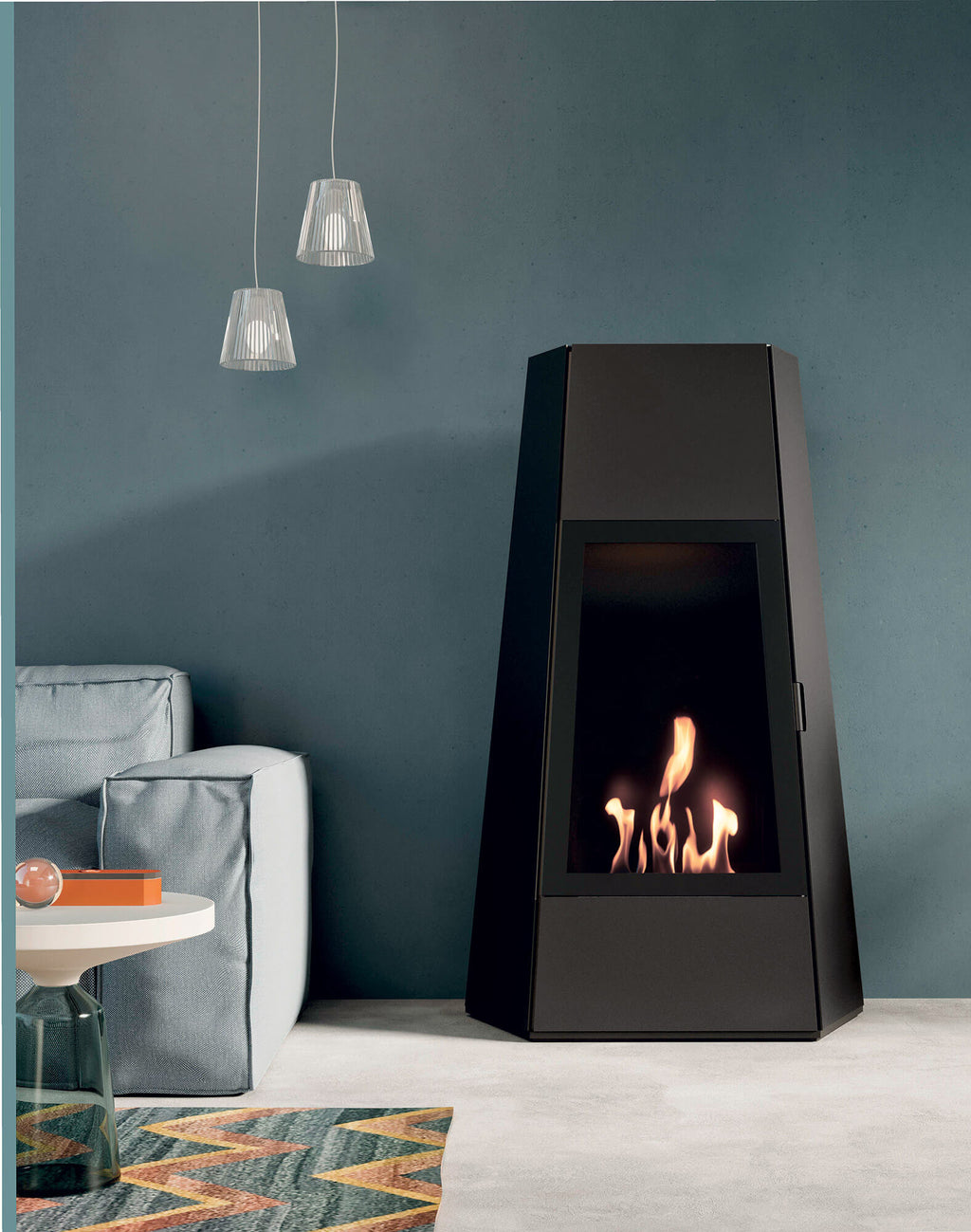 Nuovo bio camino Shanghai dal design interamente italiano. Una piacevole struttura in acciaio verniciato nero con una porta di vetro che funge da protezione, che racchiude ecologiche fiamme alimentate a bioetanolo. La praticità è un'ulteriore caratteristica che contraddistingue questo biocamino che non necessita di allacciamento elettrico o canna fumaria. Il bruciatore è regolabile e fatto con fibra ceramica e il prodotto è conforme alla normativa EN16647:2016.