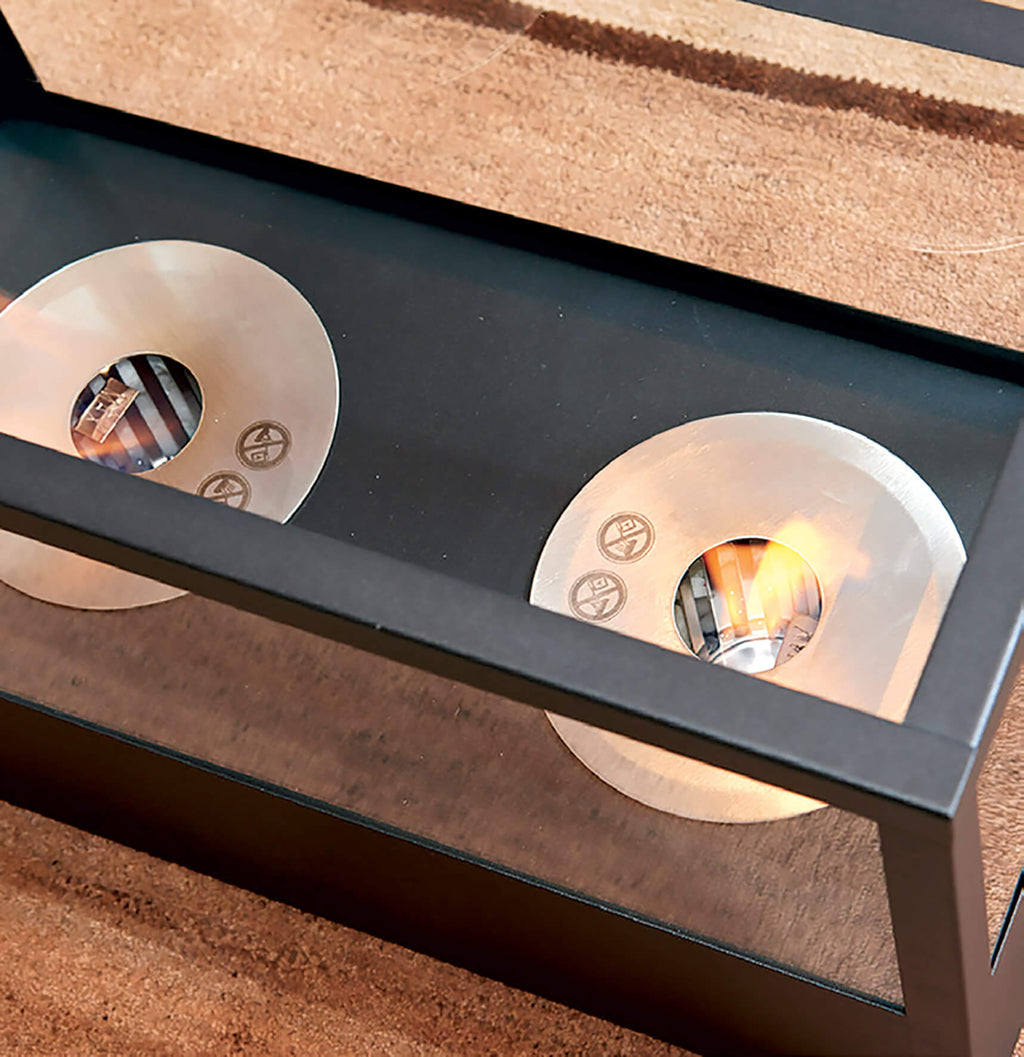 Biocamino in acciaio, con doppio bruciatore per un calore esclusivo.