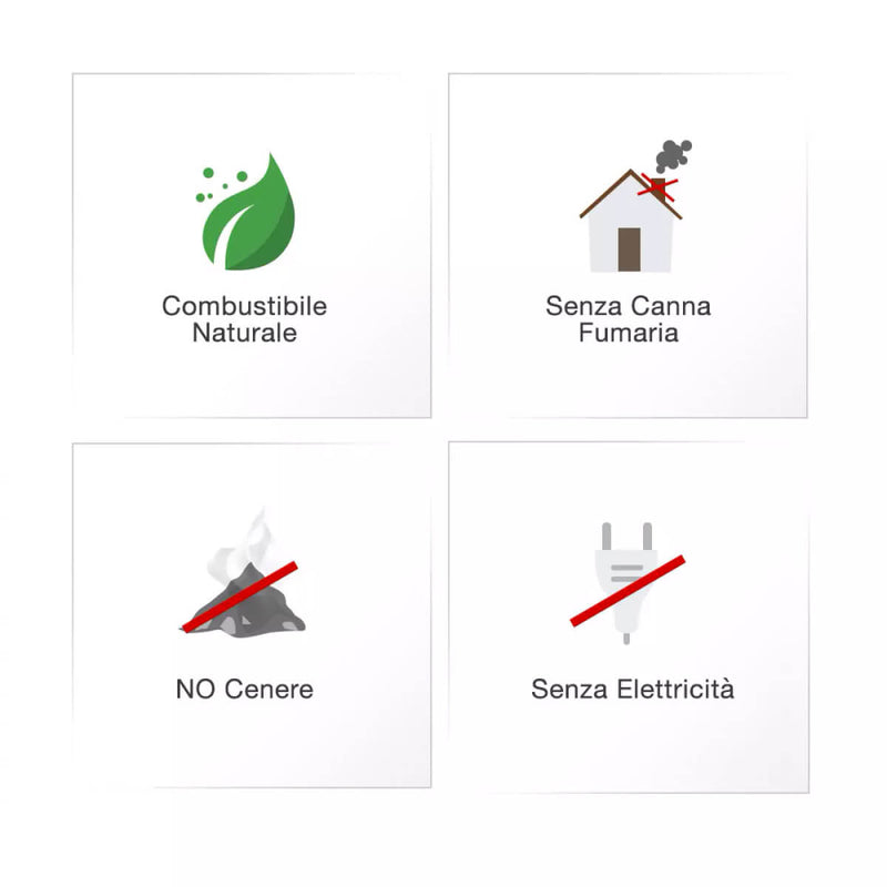 - Questo caminetto a bioetanolo non richiede elettricità , gas, camino, canna fumaria, nessun costoso sistema di ventilazione, non produce fumo nà© cenere, può essere utilizzato quasi ovunque