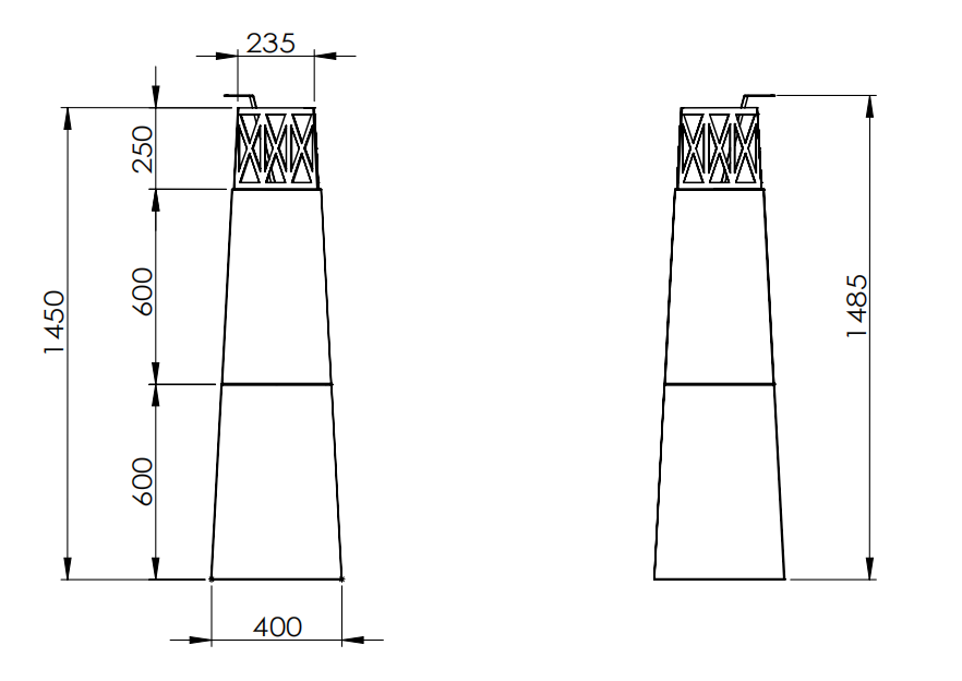 Camino a Bioetanolo da Pavimento 40x40x145 cm per Esterno Vulcano Bianco