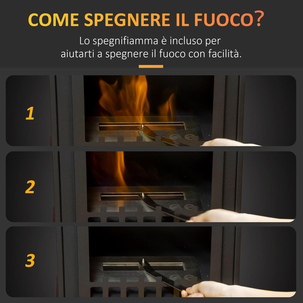 Camino a Bioetanolo da Pavimento 41x25x54 cm in Metallo Nero