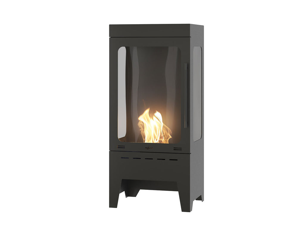 Il biocamino INCOZA 3 è un modello piuttosto geometrico che dà un effetto spaziale, perché il fuoco è visibile da tre lati grazie alla vetratura! La vetratura completa e le porte apribili rendono INCOZA 3 sicuro non solo per gli adulti ma anche per i bambini. Non necessita di alcun collegamento alla canna fumaria e il calore viene rilasciato al 100% nell'ambiente.