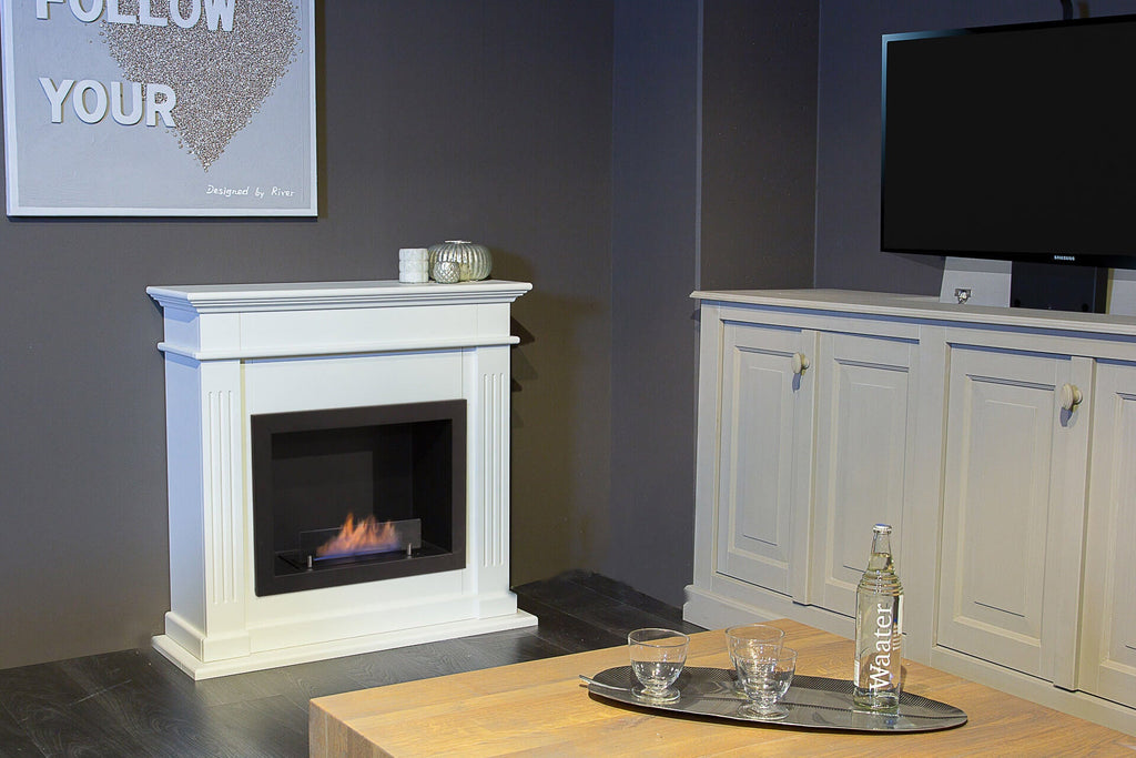 Caminetto bioetanolo Elda-Riano dal design classico e senza tempo regala alla vostra casa un'atmosfera calda, elegante e molto accogliente.