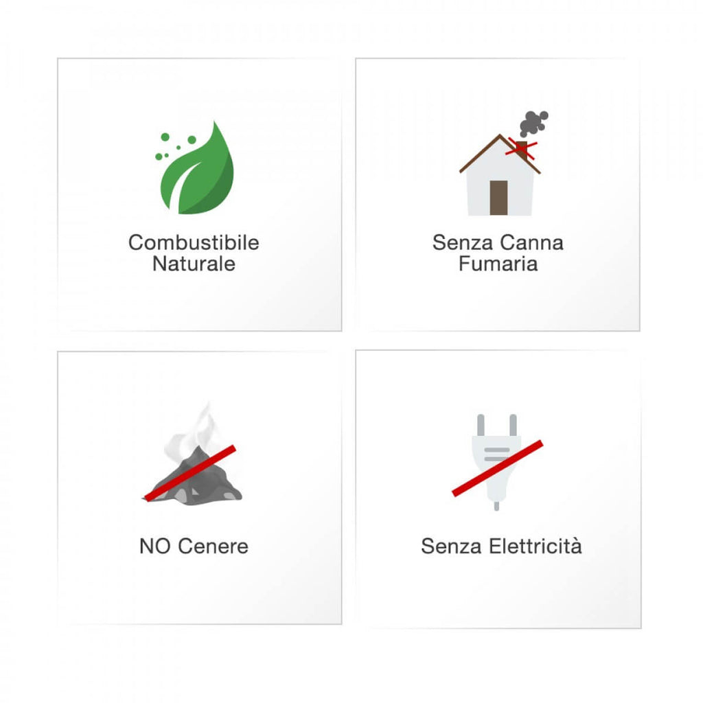 Il camino a etanolo non necessità in genere di alcuna manutenzione successiva al montaggio, non produce cenere e residui, inoltre è totalmente scongiurata la presenza di elementi che possano essere soggetti ad usura, garantendo una stabilità costante nel tempo.