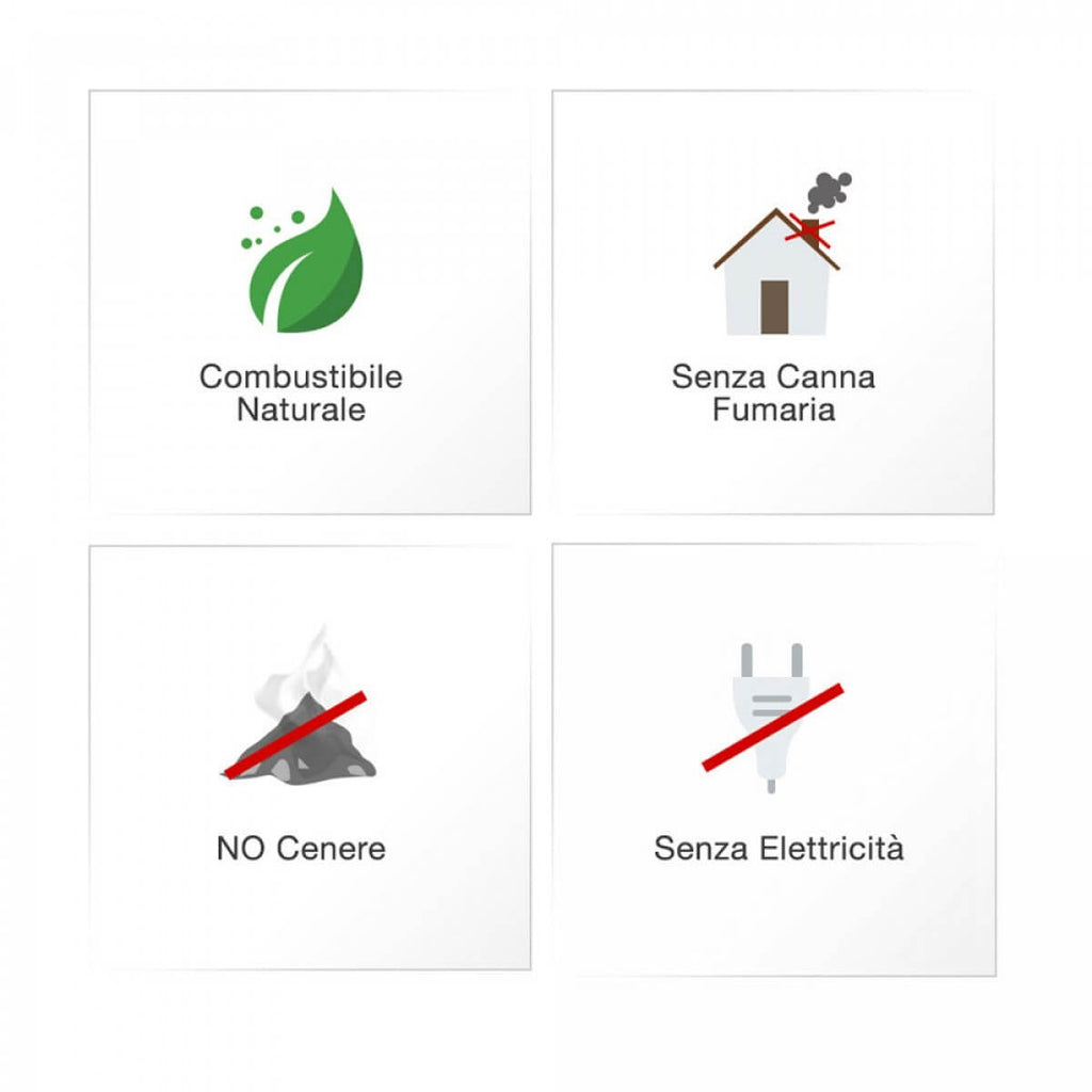 Caratteristiche Tecniche Camino a Bioetanolo da Pavimento Angolare Vannini Donatello Bianco