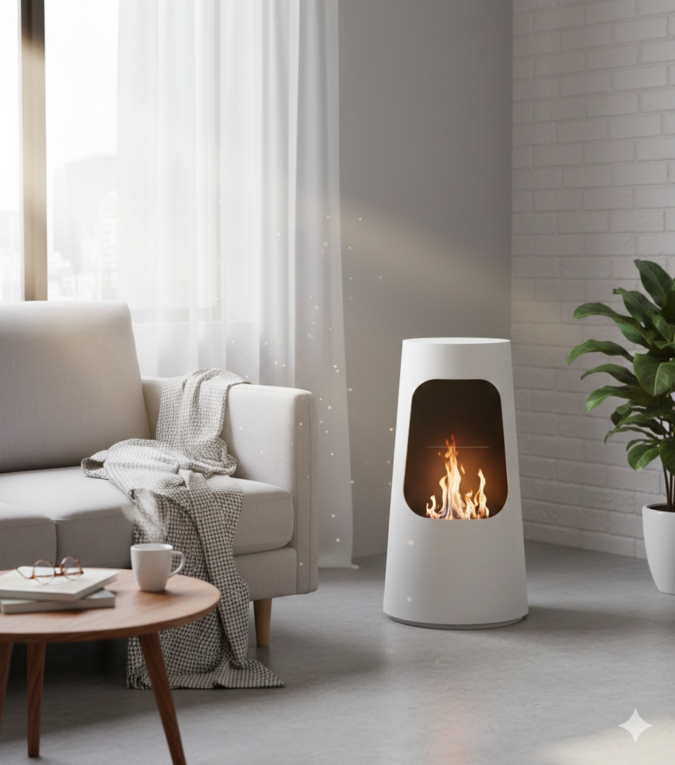 Camino a Bioetanolo da Pavimento Ø50x96 cm Dubai Bianco