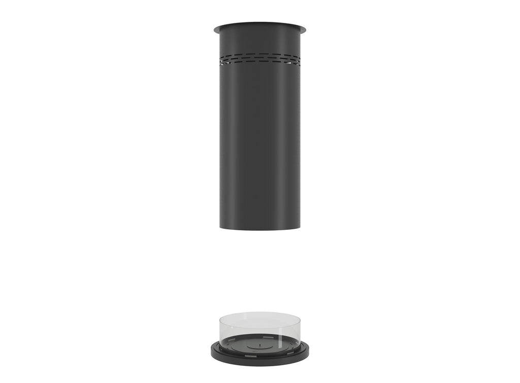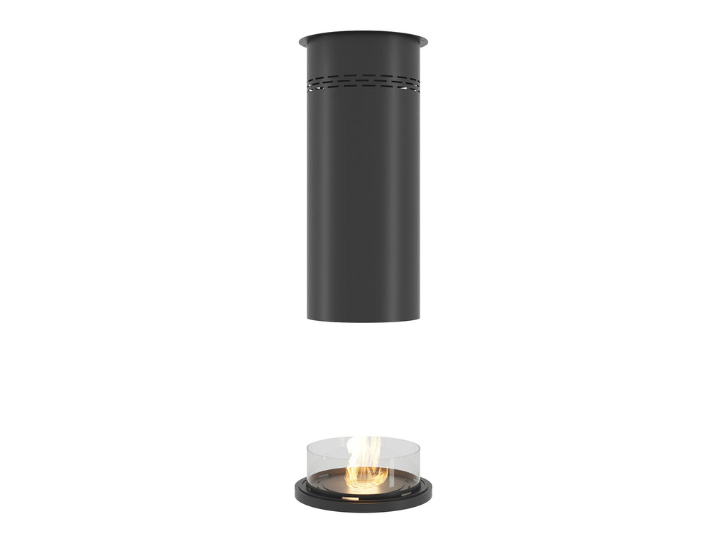 Camino a Bioetanolo da Pavimento Ø80 cm con Finta Canna Fumaria Inround Nero con Vetro