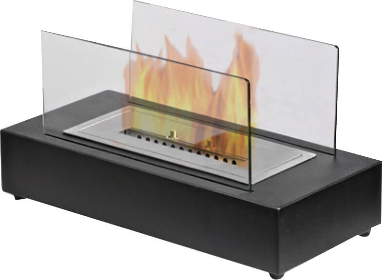 E un prodotto versatile, elegante e darredo, puo? essere inserito in un camino gia? esistente o posato a centro tavola. Caminetto ecologico, vetro e lamiera, con bruciatore in acciaio inox AISI 430 con doppio fondo e lana di roccia. Serranda regolabile manualmente. Potenza massima di 3,5 KW/H, e non necessita di canna fumaria. Certificato TU?V.