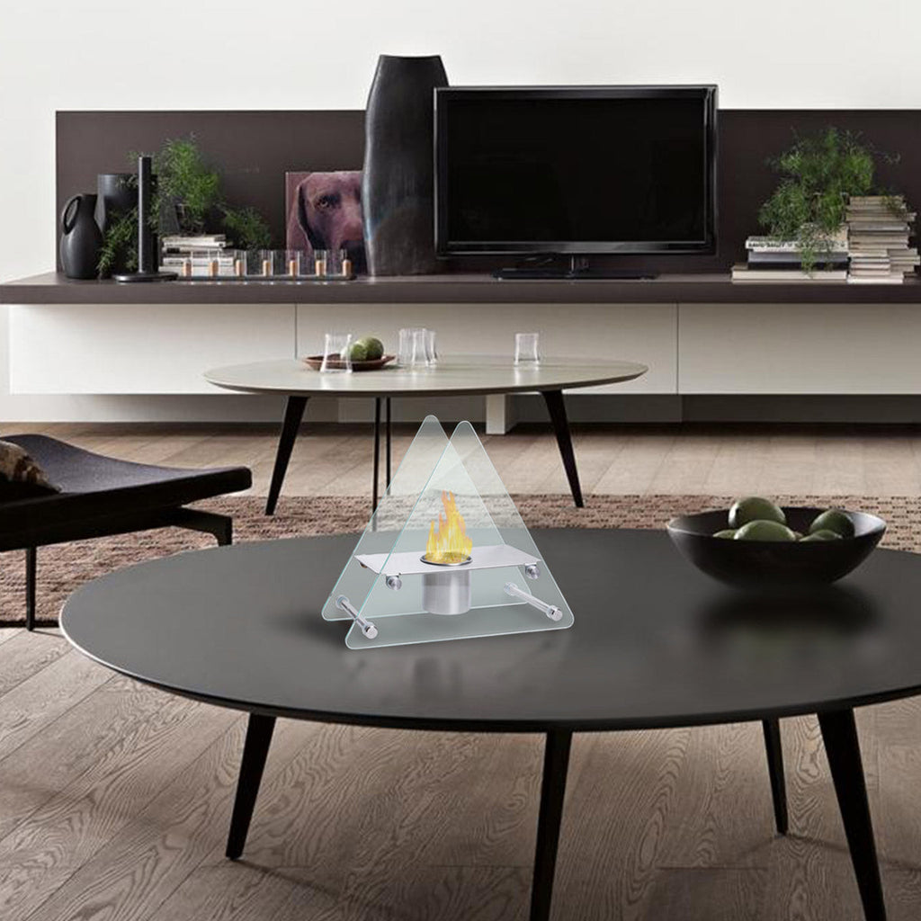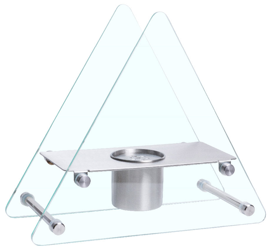 Triade è un biocamino da tavolo scenografico e innovativo, con cristalli temperati triangolari che ne rappresentano la principale cifra stilistica. Attraverso la trasparenza del vetro sarà possibile apprezzare la danza della fiamma.