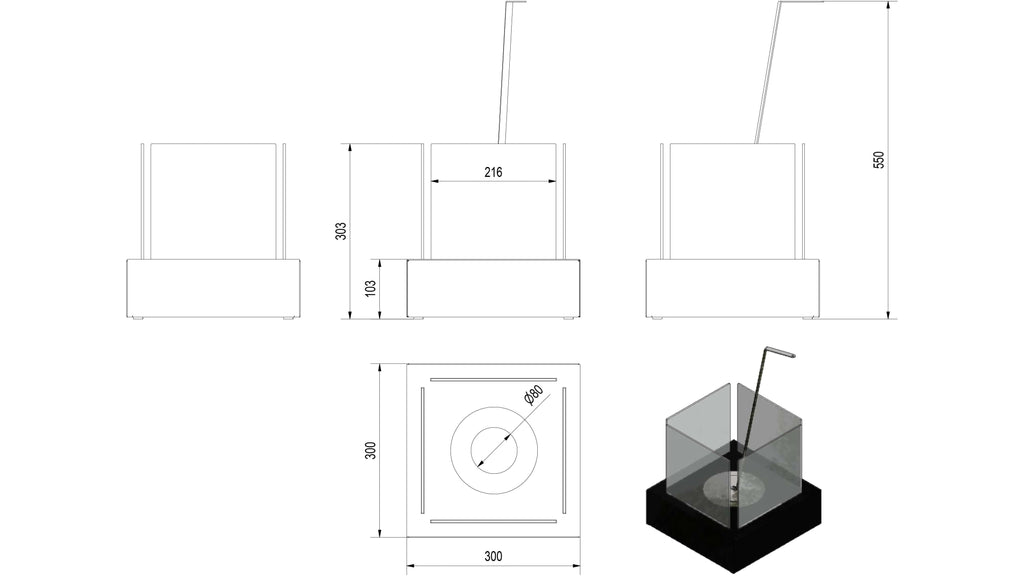 Caminetto a bioetanolo da tavolo dal design moderno, le sue dimensioni lo rendono ideale per qualsiasi ambiente interno ed esterno, come giardino o terrazza, per dare un tocco di classe alle tue serate estive con amici. Facile da installare, realizzato in acciaio con verniciatura a polvere. Aggiungendo al bioetanolo qualche goccia di essenza profumata, il biocamino può essere utilizzato anche come diffusore di aromi.