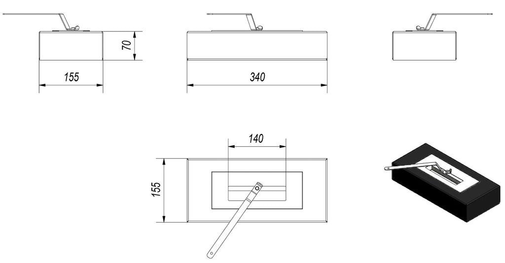 Caratteristiche Tecniche Camino a Bioetanolo da Tavolo 34x7x15,5 cm Flig Rialto Mini Bianco