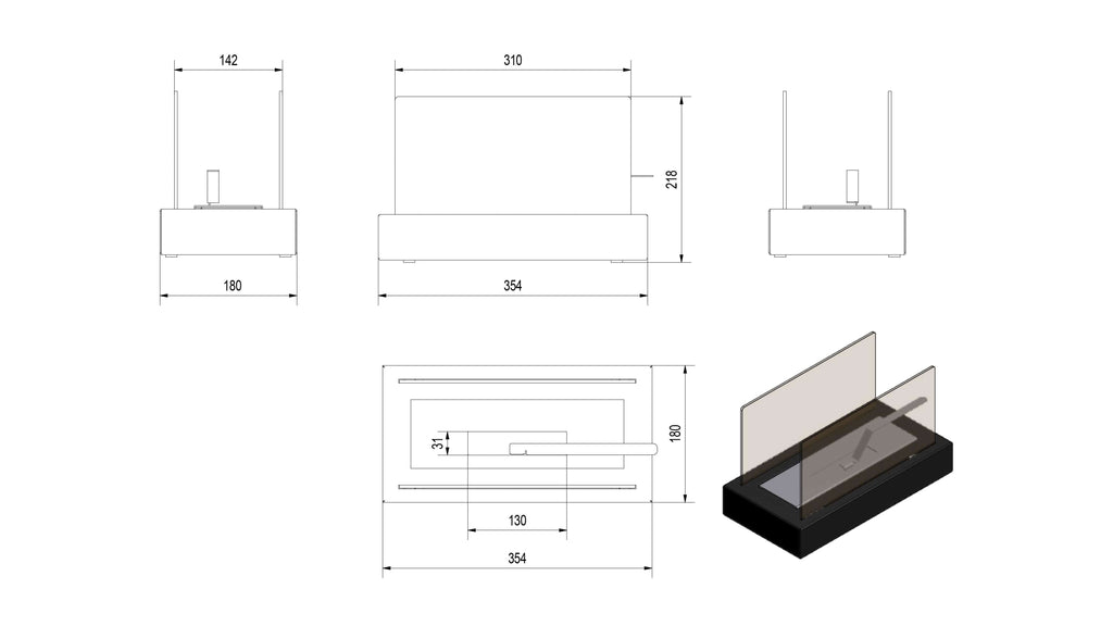 Caminetto a bioetanolo da tavolo dal design moderno, le sue dimensioni lo rendono ideale per qualsiasi ambiente interno ed esterno, come giardino o terrazza, per dare un tocco di classe alle tue serate estive con amici. Facile da installare, realizzato in acciaio con verniciatura a polvere. Aggiungendo al bioetanolo qualche goccia di essenza profumata, il biocamino può essere utilizzato anche come diffusore di aromi.