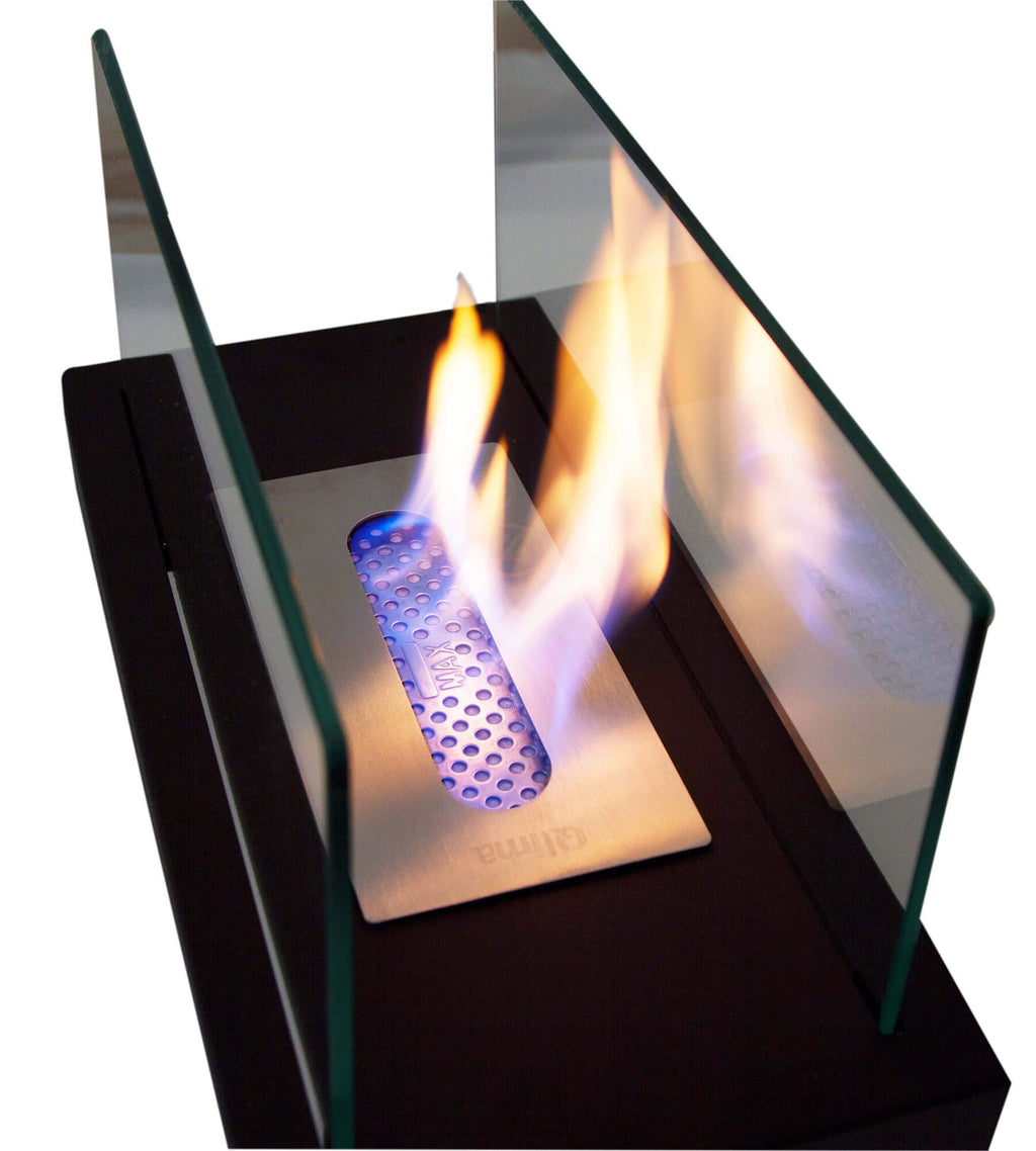 Una particolare attenzione è rivolta anche alla tranquillità di utilizzo. I due fianchi sono infatti costituiti da vetri temperati, che garantiscono maggiore sicurezza anche in caso di rottura. E la speciale forma del bruciatore trattiene il bioetanolo impedendone eventuali fuoriuscite nel caso il caminetto venga capovolto.