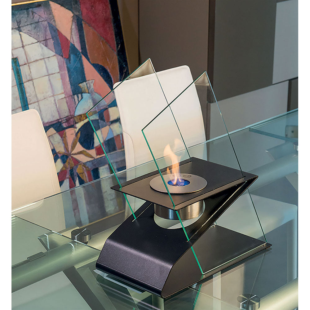 Biocamino da Tavolo dal design stravagante a forma di Z Imperia.