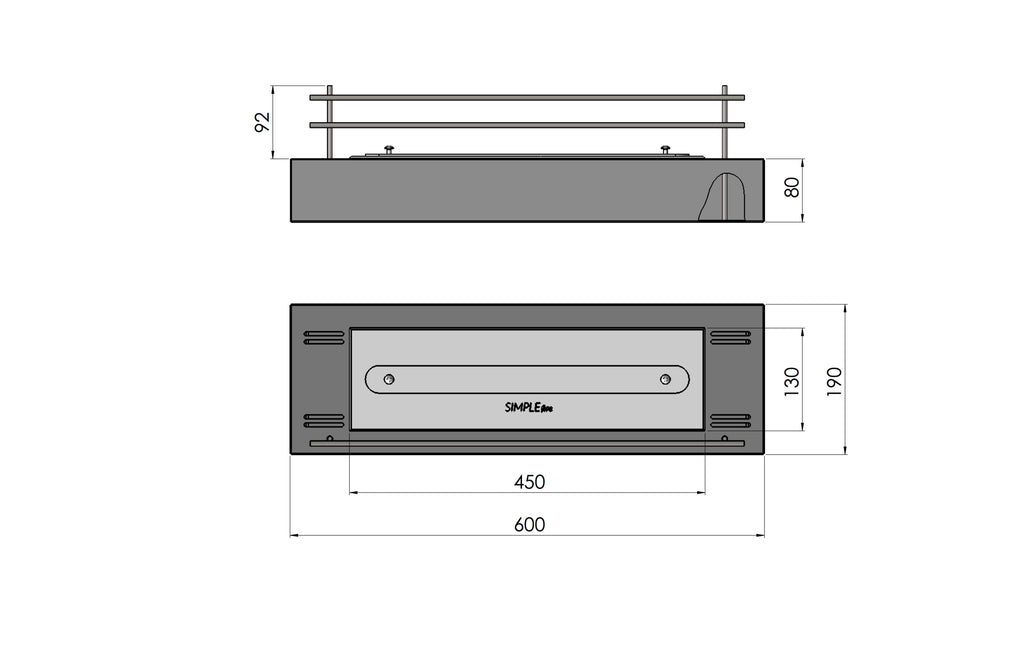 Caratteristiche Tecniche Camino a Bioetanolo da Tavolo 60x8x19 cm Firebox 600 Nero con Vetro