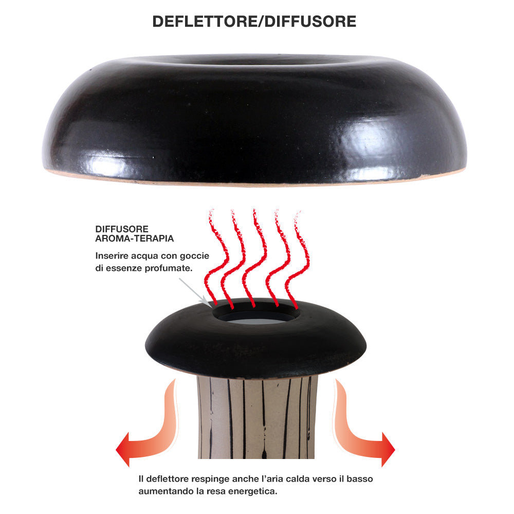Deflettore: Respinge anche l'aria calda verso il basso aumentando la resa energetica.