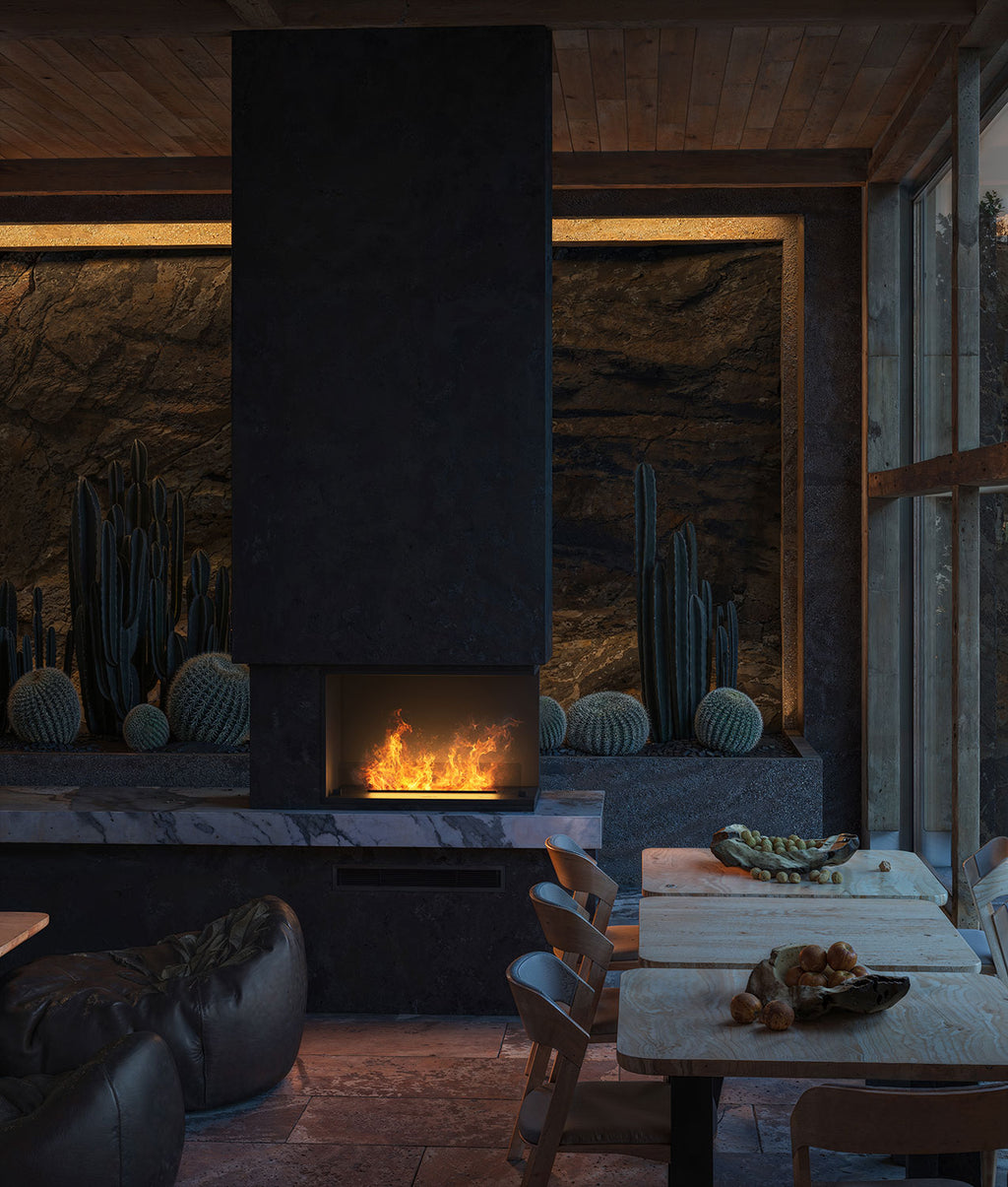 Il camino Invapo Corner P800 combina un design moderno ed elegante con dimensioni compatte e tecnologia avanzata Optimyst. Questo prodotto crea un'illusione realistica di fiamme senza generare vero fuoco. Il vapore acqueo viene illuminato da LED, creando un effetto che ricorda le fiamme naturali.