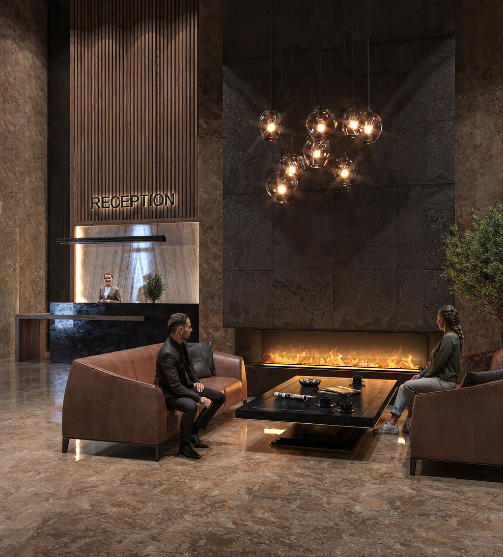 Grazie alla tecnologia Optimyst, che impiega ultrasuoni e illuminazione LED, la fiamma appare dinamica e realistica. Questo caminetto non solo abbellisce l'ambiente, ma contribuisce anche a umidificare l'aria, rendendolo ideale per appartamenti, uffici o hall di hotel. È facile da usare e installare, offrendo un'esperienza senza complicazioni.