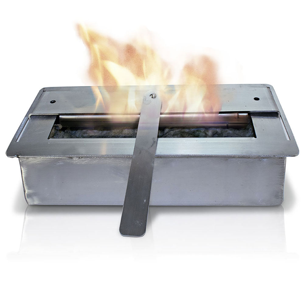 Niente di più semplice, basta versare il bioetanolo nel bruciatore e dar fuoco tramite un accendino piezoelettrico (quelli lunghi da cucina).