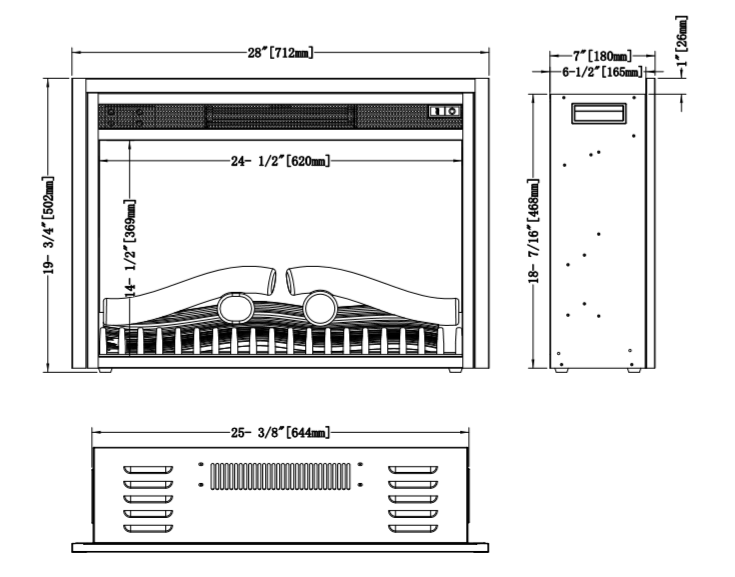 Camino Elettrico da Incasso 50,2x71,2x18 cm Effetto Fiamma 1500W Capri Nero