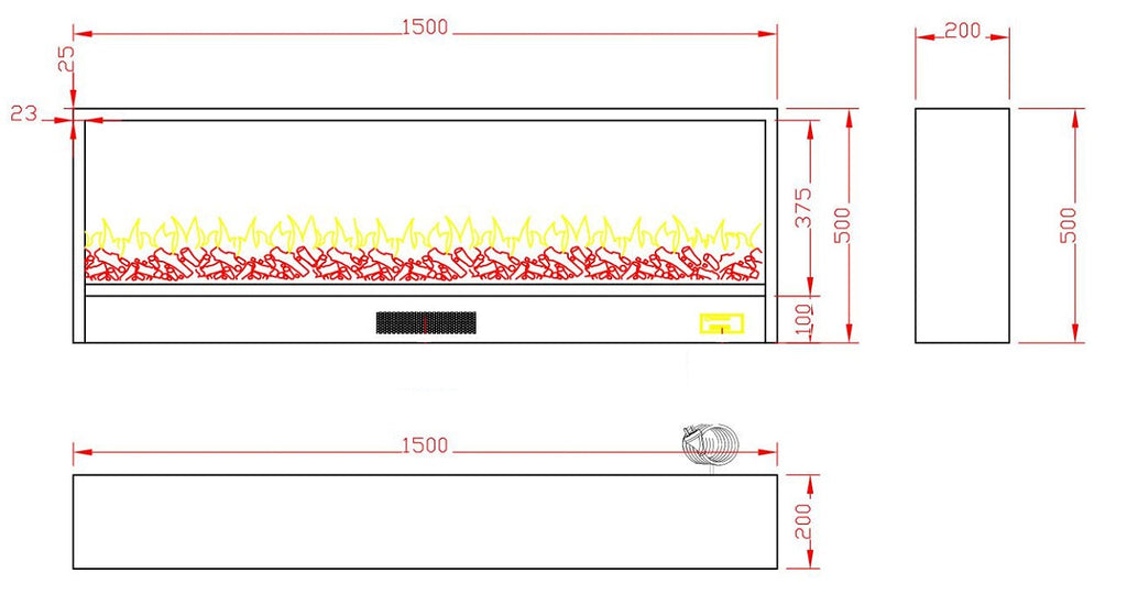 - Potenza totale 1500W con 2 selezioni possibili 750 e 1500 W direttamente dal camino o dal telecomando