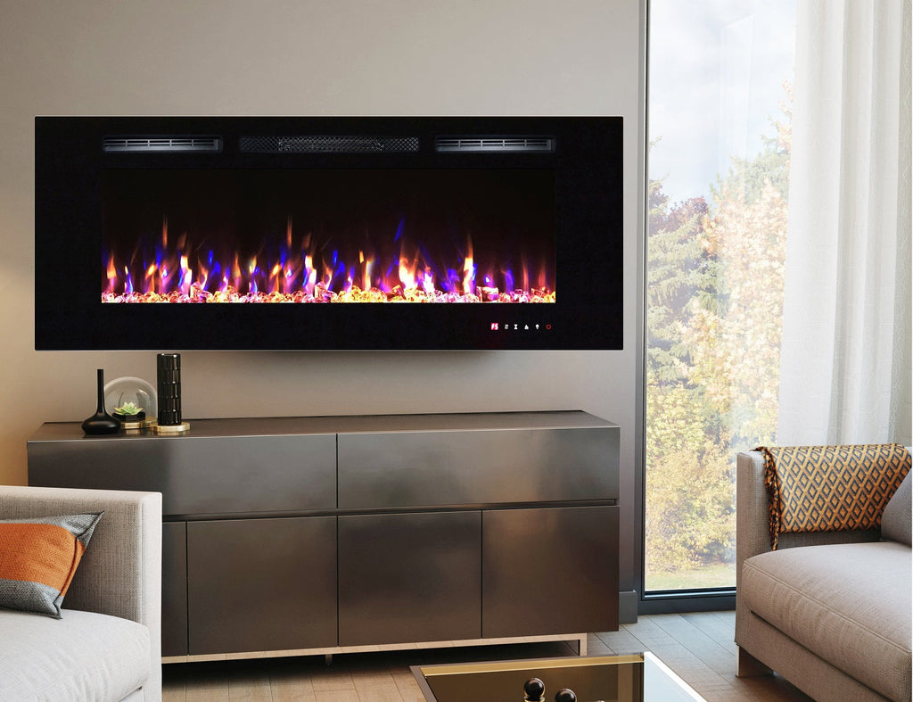 Camino Elettrico da Incasso 54,4x182,8x14 cm Effetto Fiamma 1500W Heracles
