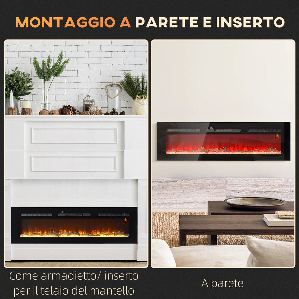 Camino Elettrico da Parete 1800W con Telecomando e Display LCD 152,4x15,8x45 cm Nero