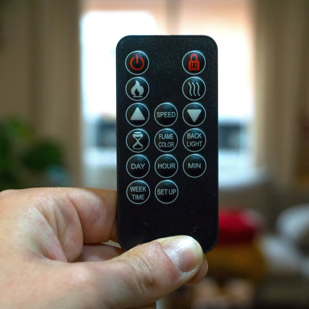 - Effetto fiamma LED realistico, regolabile in 6 livelli con telecomando