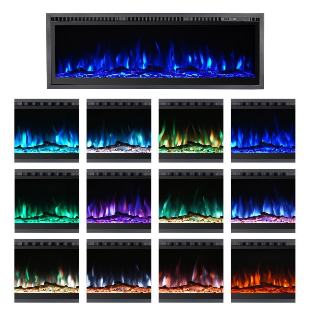 Camino Elettrico Da Parete A Incasso Frontale 127x14x45 cm Chicago Nero