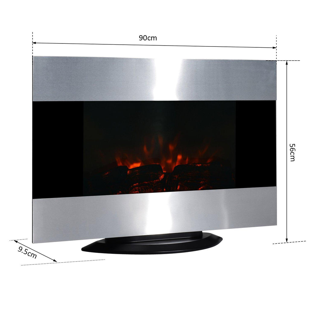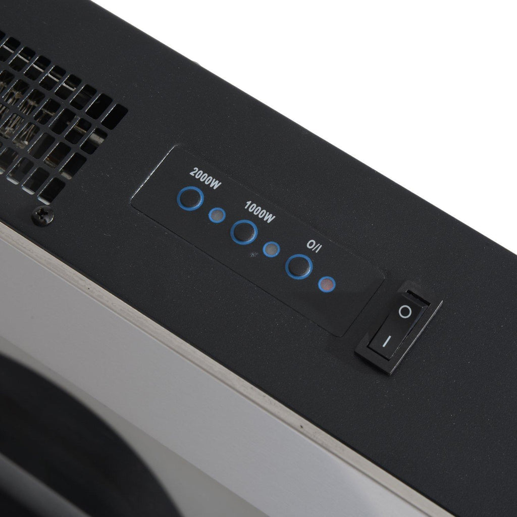 Camino Elettrico da Parete o Terra Effetto Fiamma 1000W/2000W Inox e Nero