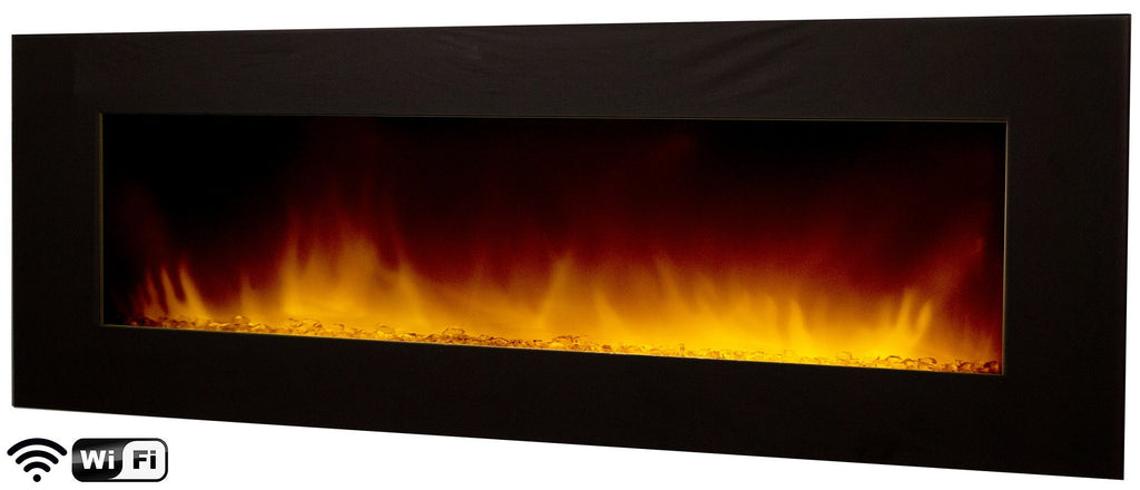 Camino Elettrico da Parete Wifi Effetto Fiamma 2000W CheminArte Volcano 5XL Nero