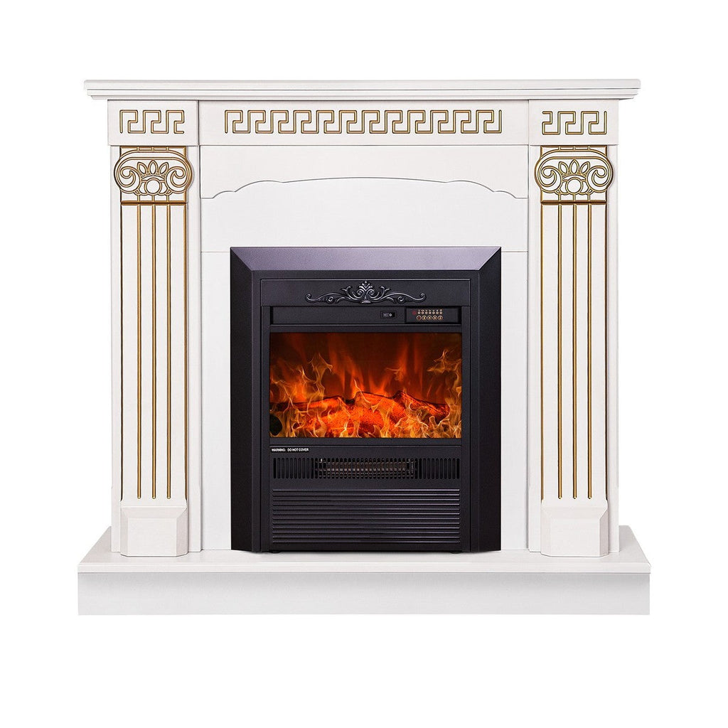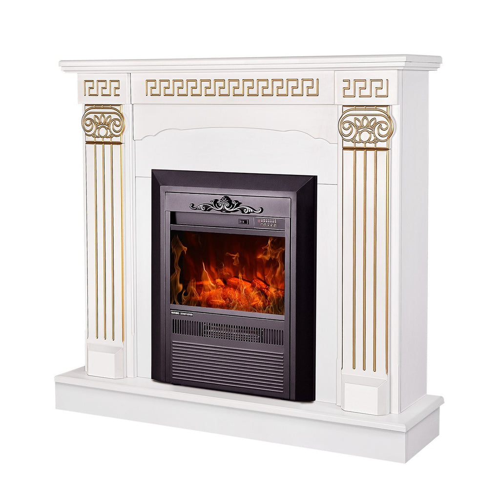 Camino Elettrico da Pavimento 102x110x30 cm Effetto Fiamma 2000W Calisto & Cristina Bianco
