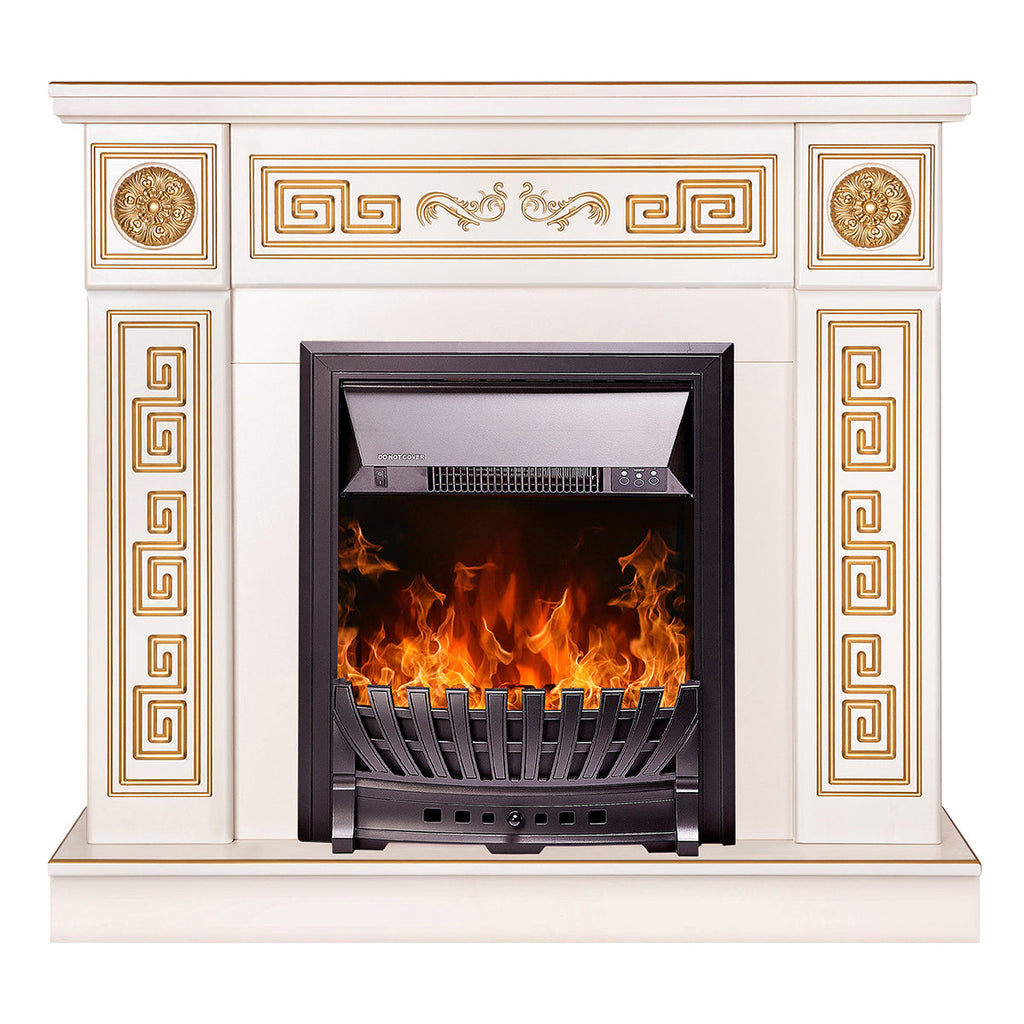 Camino Elettrico da Pavimento 102x110x30 cm Effetto Fiamma 2000W Versailles gold & Pluton Avorio