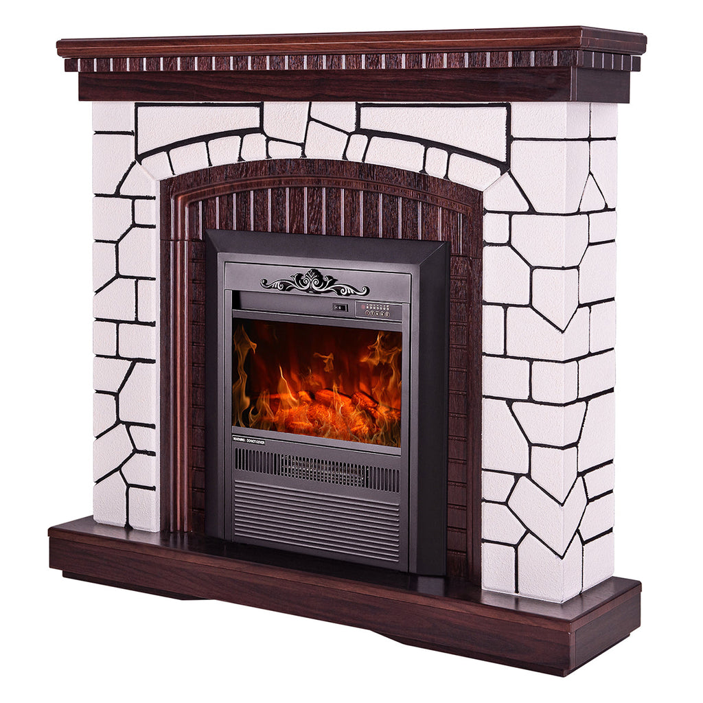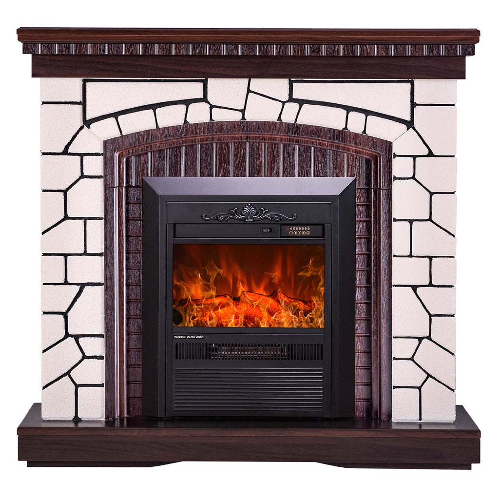 Camino Elettrico da Pavimento 105,8x110x30 cm Effetto Fiamma 2000W Natali & Cristina Bianco/noce scuro