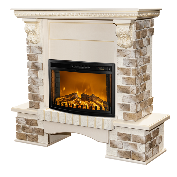 Camino Elettrico da Pavimento 109x110x33 cm Effetto Fiamma 1500W Topaz & Zakinthos Avorio
