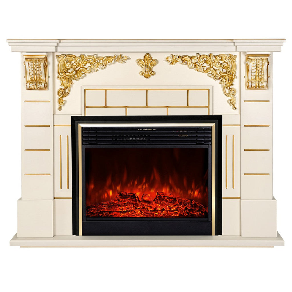 Camino Elettrico da Pavimento 111x145x38 cm Effetto Fiamma 1950W Imperial & Richi Avorio