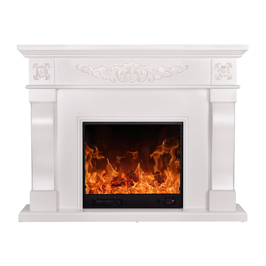 Camino Elettrico da Pavimento 116x150x33 cm Effetto Fiamma 1500W Torino Bianco