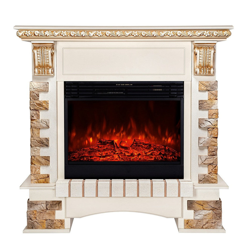 Camino Elettrico da Pavimento 118,1x123x40,3 cm Effetto Fiamma 1950W Topaz maxi & Mirabella Avorio