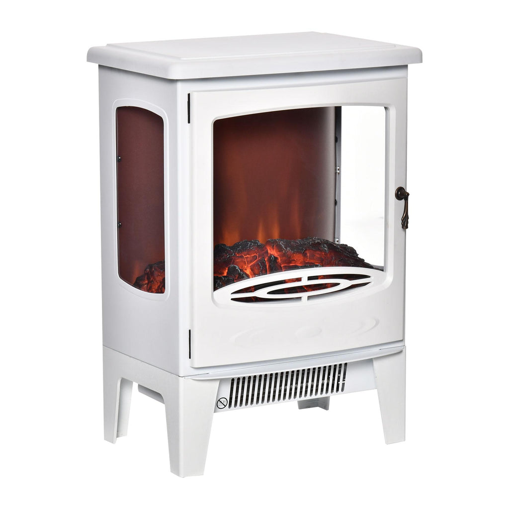 Camino Elettrico da Pavimento 39x26x54,8 cm Effetto Fiamma 2000W Bianco