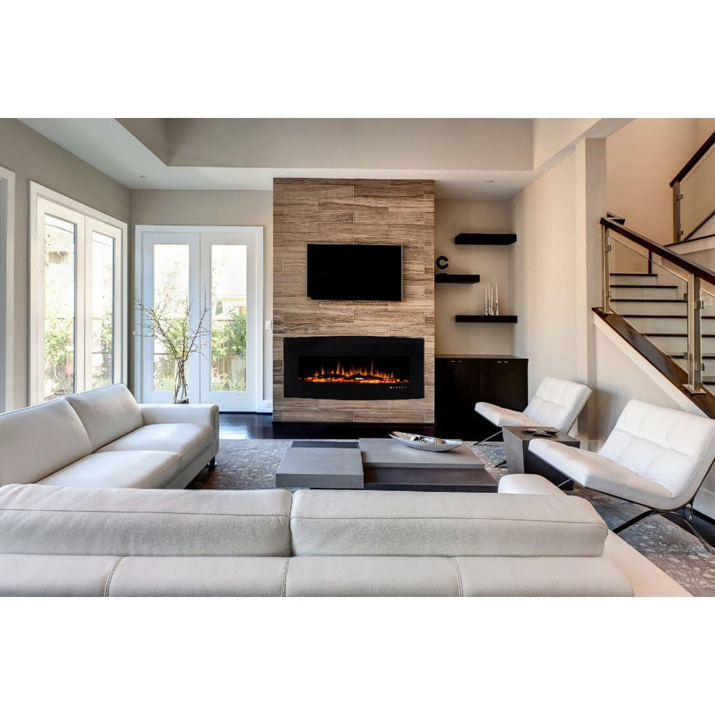 Camino Elettrico da Pavimento 55x122,2x15,7 cm Effetto Fiamma 1500W Archi Nero