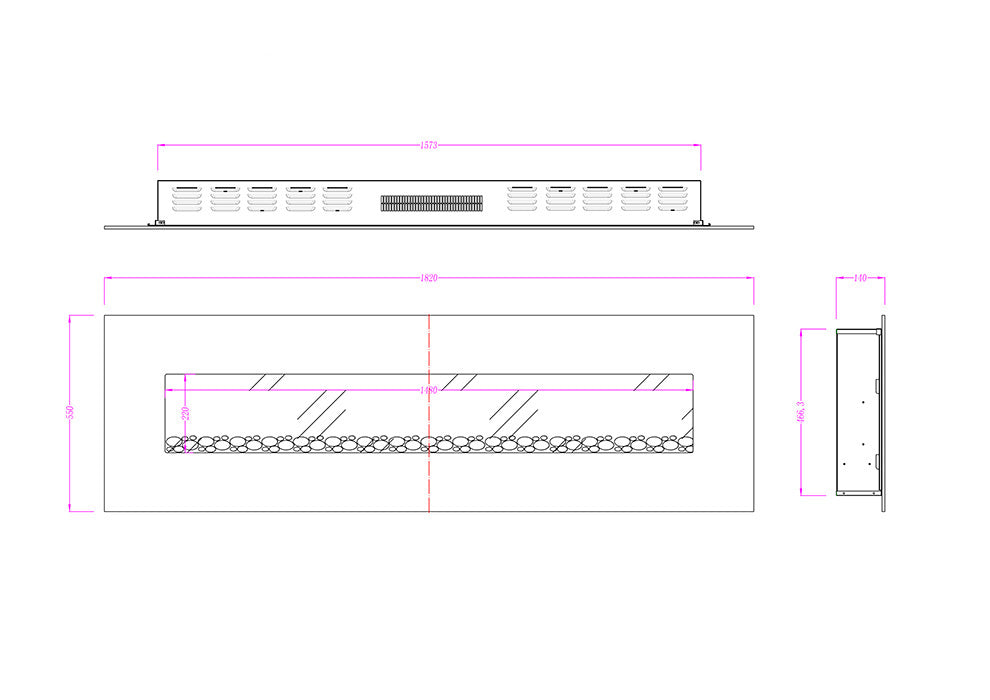 Camino Elettrico da Parete 55x182,2x14 cm Effetto Fiamma 1500W Elit
