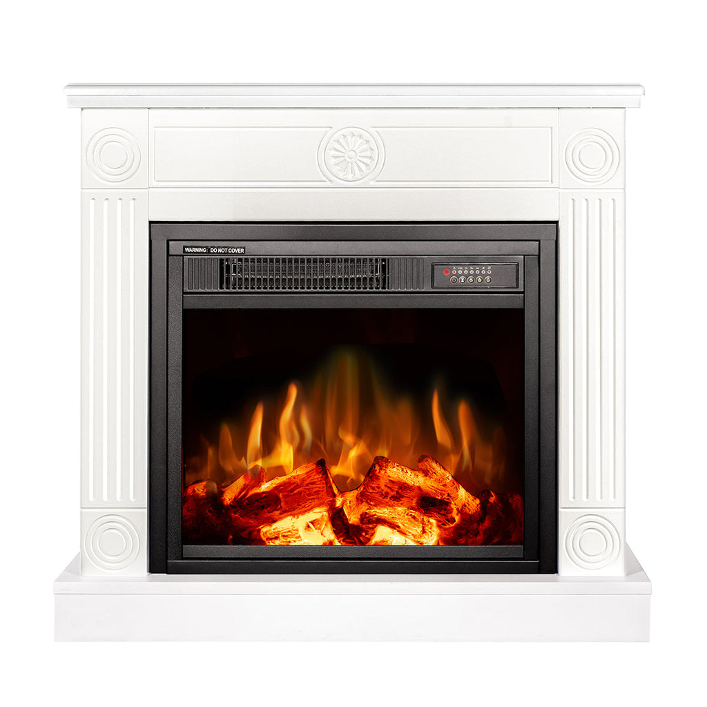 Camino Elettrico da Pavimento 73x77x21 cm Effetto Fiamma 1100W Focus & Dionis Bianco